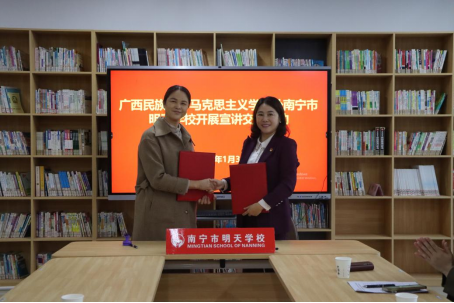 1月3日下午,乐天堂f88党委书记周丽华、党委副书记高文涛和“红石榴”学生理论宣讲团部分成员一行17人赴南宁市明天学校开展访企拓岗暨“红石榴”学生理论宣讲活动。