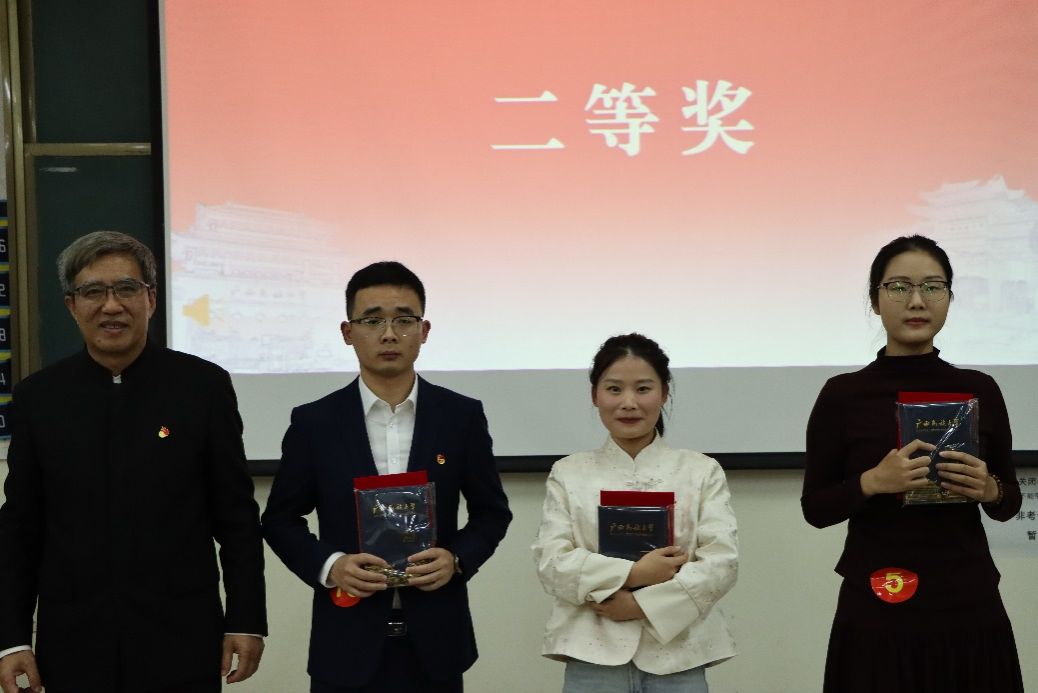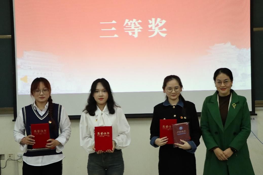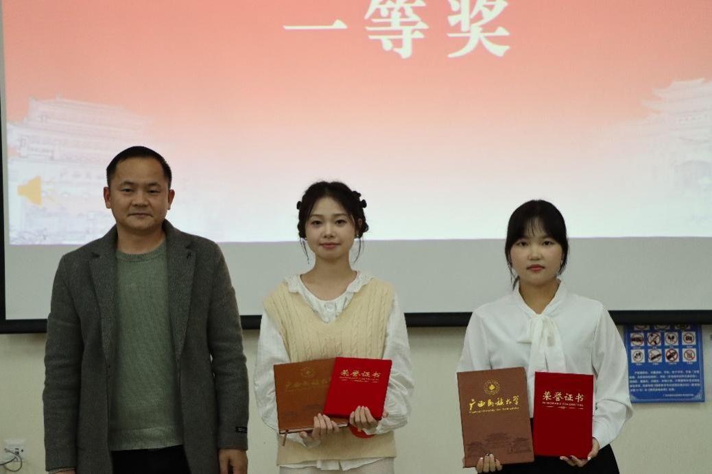 评委们根据选手们的演讲内容、语言表达、仪态风度等多个方面进行了综合评分,蒋思瑜、黄筱勤获得一等奖,刘业光、但青青、于璐获得二等奖,曹雅萱、朱甜、何欣欣获得三等奖,段秋霞、王鹏、杨小霈、黄计鹏、覃东远获得优秀奖。