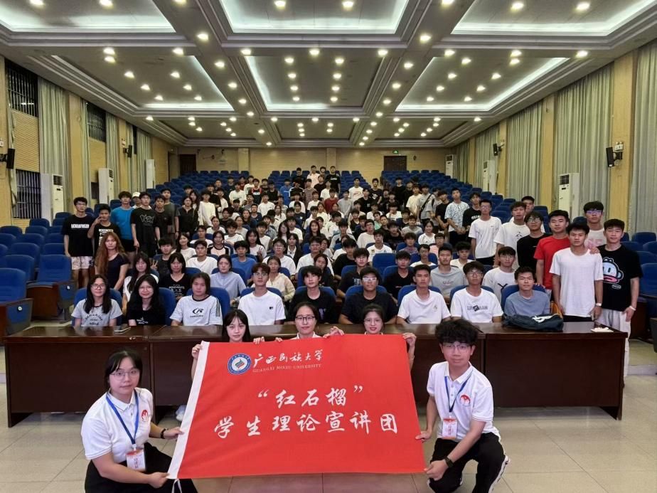 为深入学习党的二十大精神,贯彻落实《广西民族大学开展“传承红色基因、学思践悟中国共产党人精神谱系”宣传教育实施方案》的要求。广西民族大学“红石榴”学生理论宣讲团聚焦“传承红色基因、学思践悟中国共产党人精神谱系”这一主题,在我校3个校区开展理论宣讲。