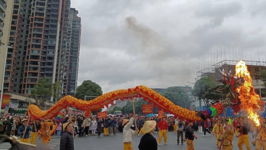 团队成员前往南宁市宾阳县宾阳万兴炮龙文化园调研,宾阳万兴炮龙文化园湛福义副会长和炮龙手艺传承人覃作启师傅向团队成员介绍了宾阳炮龙文化的形成与发展。随后,团队到宾阳县文化广场,参观炮龙节非遗游街、各乡镇队伍表演特色节目。团队深入宾阳老街,亲历舞炮龙高潮,在与当地居民的交流中了解到炮龙节精神内涵。