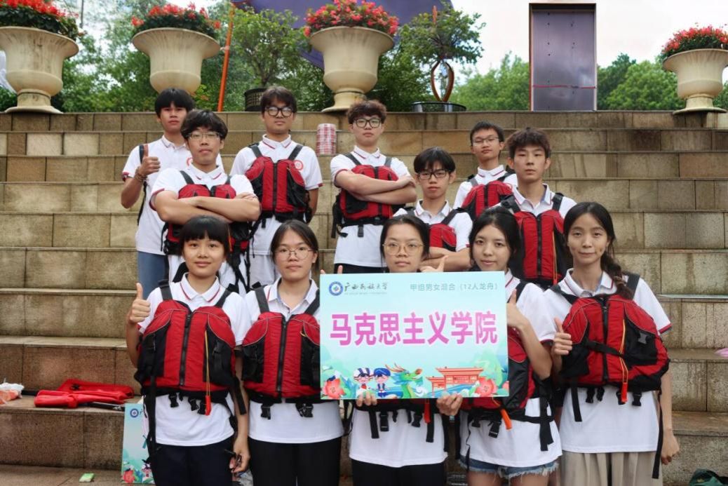 5月30日,广西民族大学2025年“红石榴”杯校园龙舟赛在相思湖畔举行。我院来自2023级中共党史2班的凌宏怡、黄紫霞、邓凌云、韦灵彬、周沁芳和来自2024级中共党史1班的陈家锋、黄培芳、李琰、姚世玉、潘浩悦、佘佳轩、蓝楚辉组成的代表队参赛。