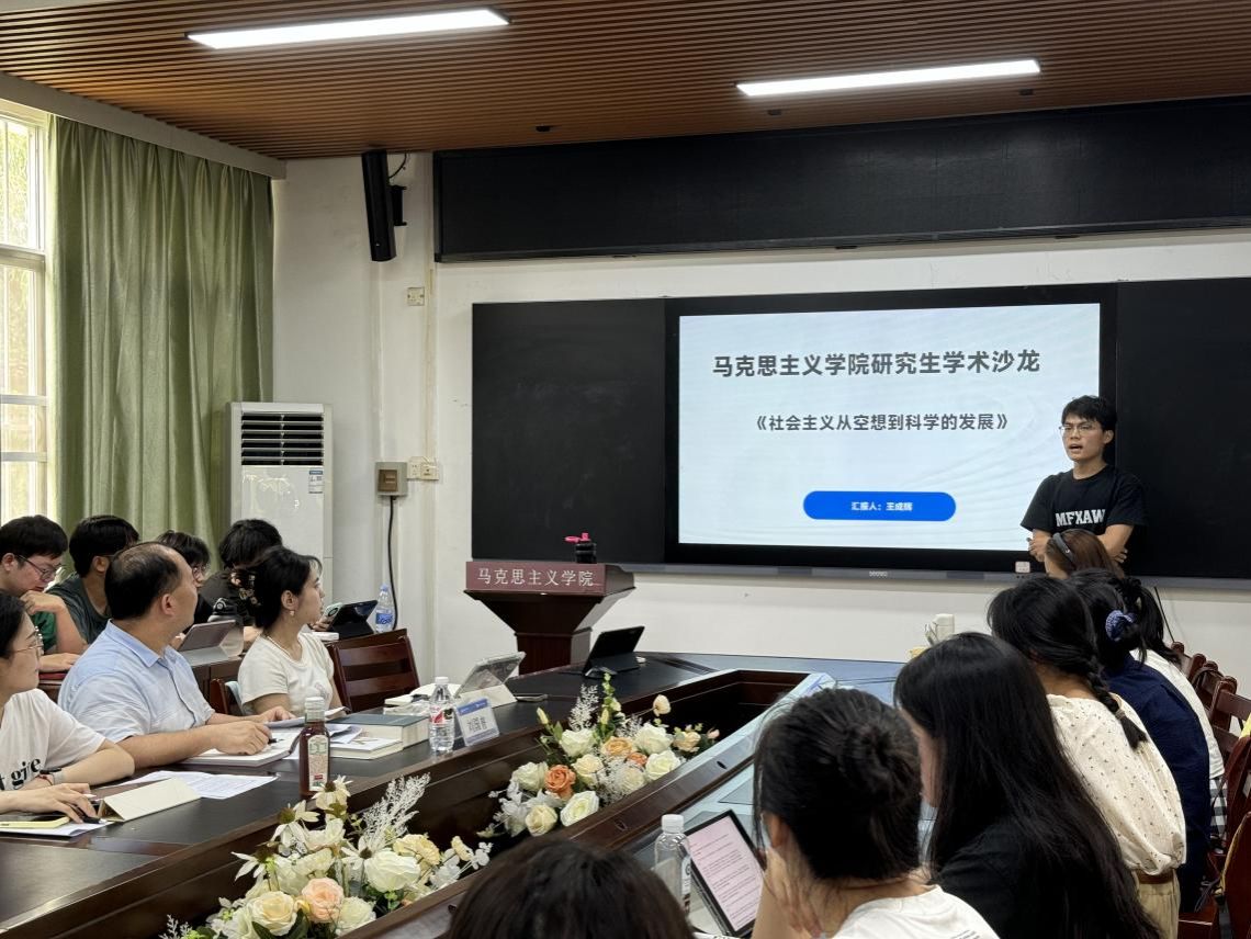 5月23日下午,乐天堂f88在求是楼307开展研究生“共读经典 求真问道”学术沙龙系列活动第1期,由刘国普副院长领读《社会主义从空想到科学的发展》,2024级研究生参加。