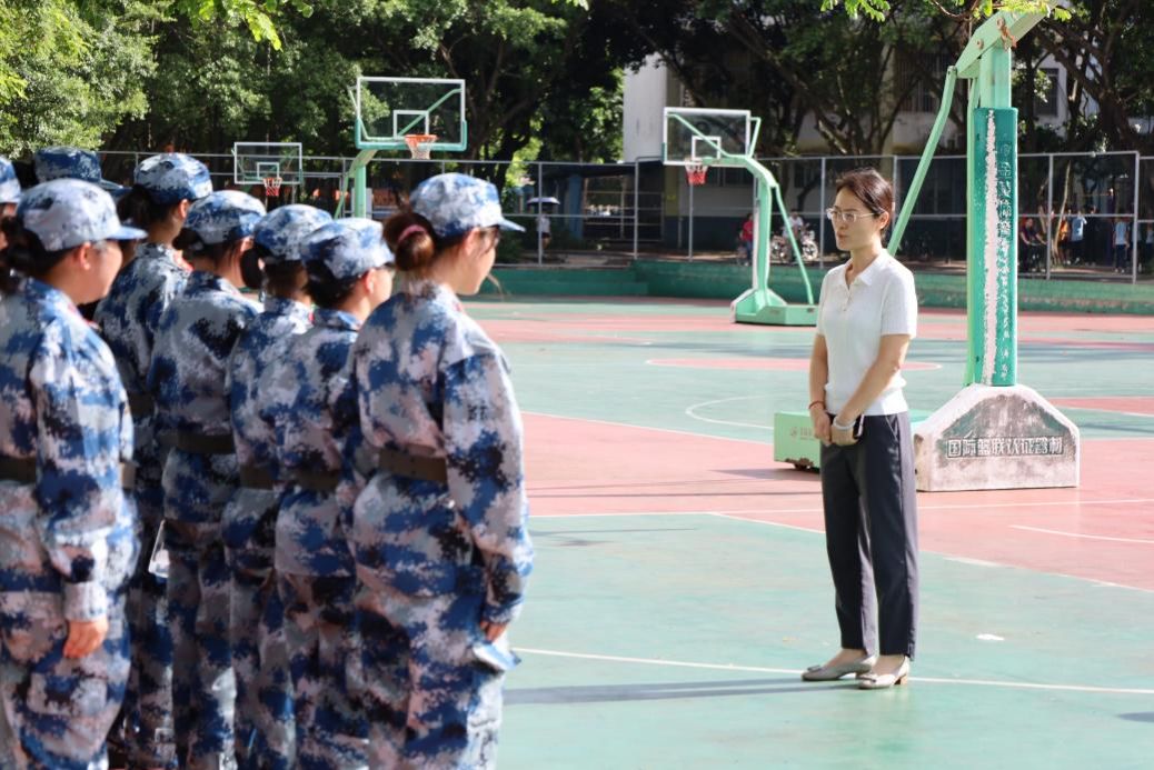 在训练场地,王颖慧对军训的新生们寄语:此次军训不仅是体能的锻炼,更是精神的洗礼。希望同学们传承优良作风,在训练中学会坚持、懂得团结,将军训中磨砺的坚韧意志,转化为学习与生活的动力,以过硬素质、昂扬风貌,展现新时代青年的担当。