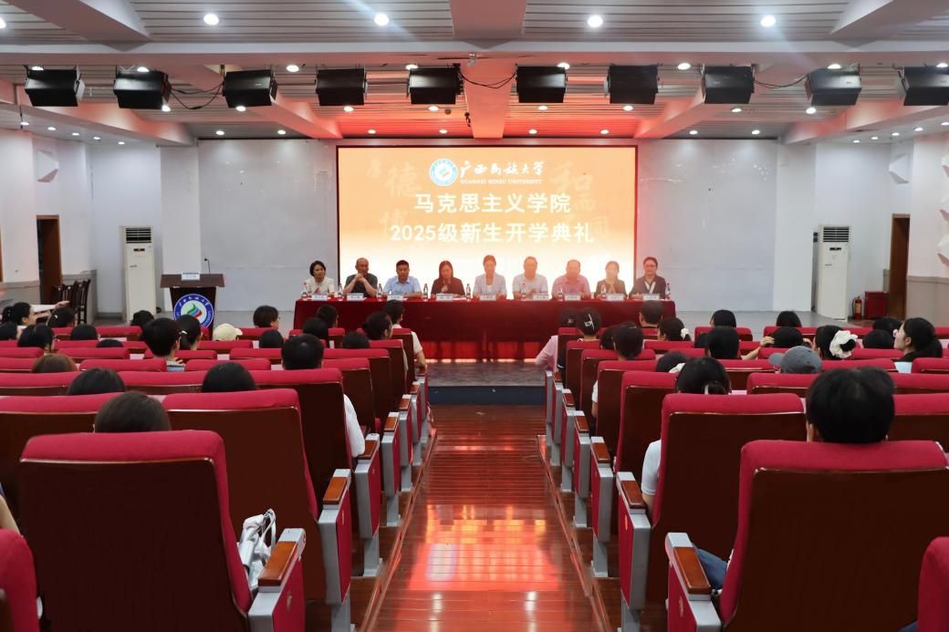 9月11日,我院在大学生活动中心201室举行2025级新生开学典礼。学院党委书记王颖慧、院长李玉雄、党委副书记谢蓓、副院长刘国普、院长助理李博豪以及学科带头人、专业负责人、2025级班主任、2025级全体学生出席典礼。典礼由学院党委副书记谢蓓主持。