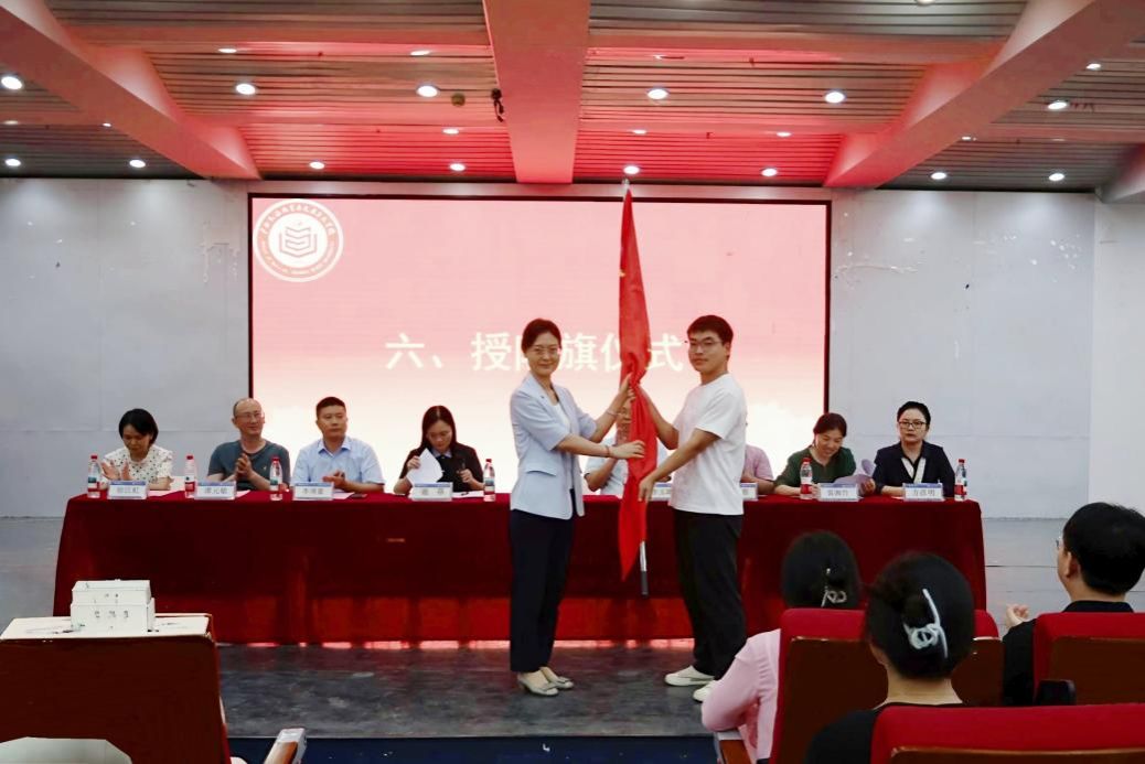 学院党委书记王颖慧为新生代表授院旗,欢迎新生的到来。