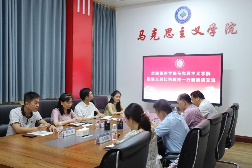 9月23日上午,贺州学院乐天堂f88党委副书记、副院长刘红艳教授一行到我院开展交流活动。李玉雄院长在交流前进行了会见,并介绍了我院情况。我院副院长刘国普、院长助理李博豪以及教师代表出席会议,双方就相关工作进行了深入交流。
