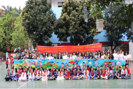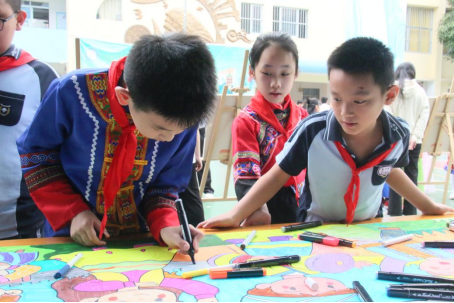 4月9日下午,广西民族大学“红石榴”学生理论宣讲团与广西艺术学院设计学院研究生第一党支部携手在广西民族大学附属小学开展民族团结主题宣讲展览活动。乐天堂f88党委副书记高文涛、广西艺术学院设计学院党委副书记何骑财、广西民族大学附属小学校长何富荣以及广西民族大学附属小学师生参与活动。